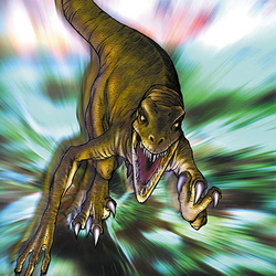 The artwork on the card shows the dinosaur moving at such a great speed that the background behind it looks blurry.